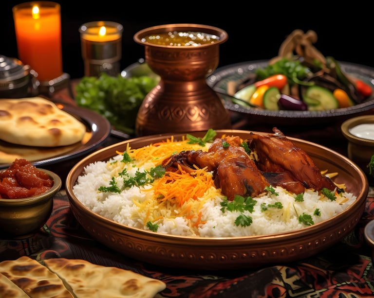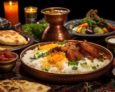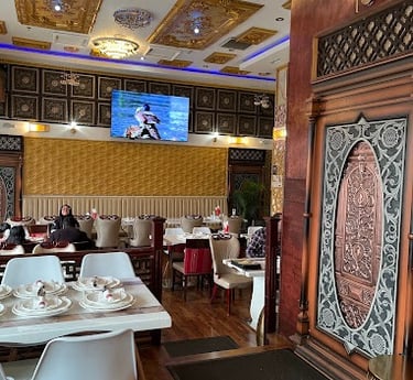 At Zaiqa Restaurant, every dish tells a story of rich flavors and warm hospitality in an elegant off-white and golden setting.